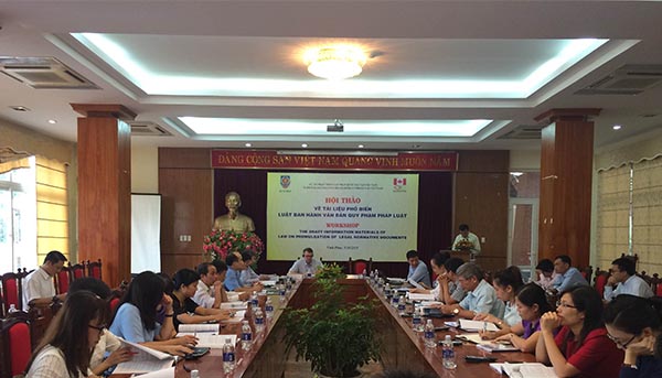 Được sự hỗ trợ của Dự án phát triển lập pháp quốc gia tại Việt Nam, Bộ Tư pháp phối hợp với Dự án tổ chức Hội thảo về tài liệu phổ biến Luật ban hành văn bản quy phạm pháp luật nhằm thảo luận, góp ý về dự thảo các tài liệu phục vụ cho việc phổ biến Luật này. Với sự quan tâm tham luận, tham gia ý kiến của nhiều chuyên gia đến từ cơ quan trung ương và địa phương, tổ chức chính trị xã hội của Việt Nam, các cơ quan, ban, ngành của tỉnh Vĩnh Phúc và của chuyên gia Canada, kết quả của Hội thảo sẽ góp phần quan trọng cho việc hoàn thiện các tài liệu phổ biến Luật văn bản quy phạm pháp luật năm 2015.