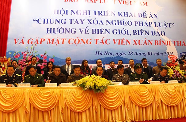 Tại Hội nghị, đại diện Bộ Tư lệnh Hải quân, Bộ Tư lệnh Bộ đội Biên phòng, Bộ Tư lệnh Cảnh sát Biển Việt Nam, Cục Kiểm ngư, tỉnh Quảng Ninh, Cao Bằng, Bắc Kạn, Bắc Ninh... và một số doanh nghiệp đã ký kết Biên bản ghi nhớ với Báo PLVN về việc phối hợp thực hiện Đề án. Đây là sáng kiến rất thiết thực và hiệu quả cần được Bộ Tư pháp quan tâm chỉ đạo, sự hỗ trợ đồng hành của toàn xã hội, của các nhà doanh nghiệp, các nhà hảo tâm để Chương trình “Chung tay xóa nghèo pháp luật” tiếp tục duy trì và phát triển.