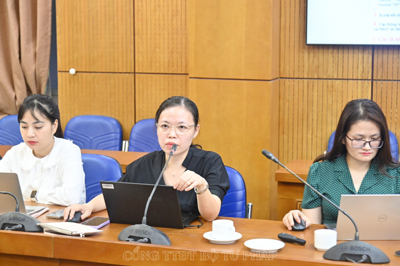 Trên cơ sở hướng dẫn kỹ thuật của các đơn vị chuyên môn của Bộ Tư pháp, Bộ Công an, các đại biểu từ các điểm cầu địa phương đã trao đổi, thảo luận, đưa ra một số vướng mắc, khó khăn trong thực hiện kết nối Hệ thống thông tin giải quyết thủ tục hành chính cấp tỉnh với Hệ thống thông tin đăng ký và quản lý hộ tịch, Phần mềm Dịch vụ công liên thông trong thực hiện liên thông 02 Nhóm thủ tục hành chính; thực hiện quy trình Liên thông nhóm thủ tục cấp Giấy xác nhận tình trạng hôn nhân và Đăng ký kết hôn. Các đơn vị chuyên môn của 02 Bộ đã giải đáp, đưa ra giải pháp tháo gỡ vướng mắc, khó khăn tại địa phương trong thực hiện công việc.