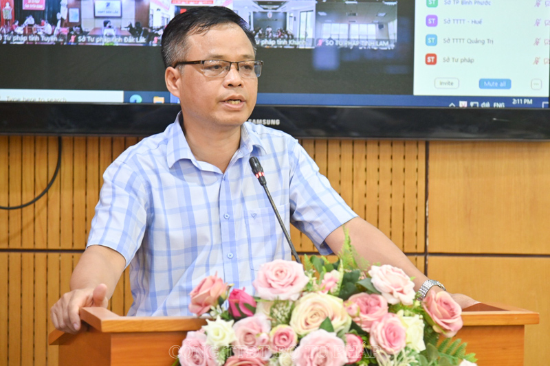 Phát biểu khai mạc buổi tập huấn, đồng chí Phạm Đức Dụ, Phó Cục trưởng Cục Công nghệ thông tin cho biết, triển khai Nghị định số 63/2024/NĐ-CP của Chính phủ quy định việc thực hiện liên thông điện tử 02 nhóm thủ tục hành chính: Đăng ký khai sinh, đăng ký thường trú, cấp thẻ bảo hiểm y tế cho trẻ em dưới 6 tuổi; Đăng ký khai tử, xóa đăng ký thường trú, giải quyết mai táng phí, tử tuất, trong thời gian vừa qua các đơn vị chuyên môn của Bộ Tư pháp đã phối hợp với đơn vị chuyên môn của Bộ Thông tin và Truyền thông cấu hình các dịch vụ, xây dựng tài liệu gửi các địa phương để triển khai kết nối.