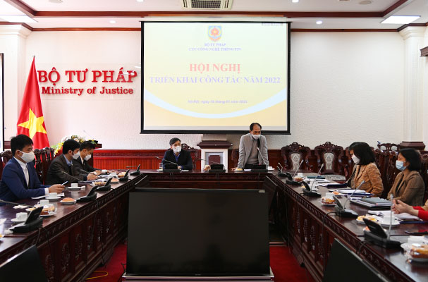 Đây là biểu dương của Thứ trưởng Bộ Tư pháp Nguyễn Khánh Ngọc đối với tập thể cán bộ, công chức, viên chức Cục Công nghệ thông tin (CNTT) tại Hội nghị triển khai công tác năm 2022 vào sáng nay (18/01). Cục trưởng Cục CNTT Nguyễn Tiến Dũng đồng chủ trì Hội nghị.