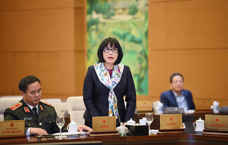 Phát biểu tại Phiên họp, Thứ trưởng Bộ Tư pháp Đặng Hoàng Oanh nêu rõ Bộ Tư pháp nhất trí hoàn toàn về sự cần thiết cũng như các đánh giá trong Báo cáo thẩm tra về tính hợp hiến, hợp pháp, tính thống nhất, đồng bộ của dự thảo Pháp lệnh trình tự, thủ tục xem xét, quyết định áp dụng các biện pháp xử lý hành chính tại TAND (sửa đổi). Hồ sơ dự án Pháp lệnh đã bảo đảm đầy đủ theo quy định tại Luật Ban hành văn bản quy phạm pháp luật.