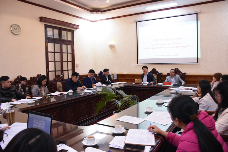Tại cuộc họp, đại diện Cục kiểm tra văn bản QPPL đã công bố Quyết định của Bộ trưởng Bộ Tư pháp về việc thành lập Tổ soạn thảo Đề án “Nâng cao chất lượng và hiệu quả khai thác, sử dụng Bộ pháp điển”.