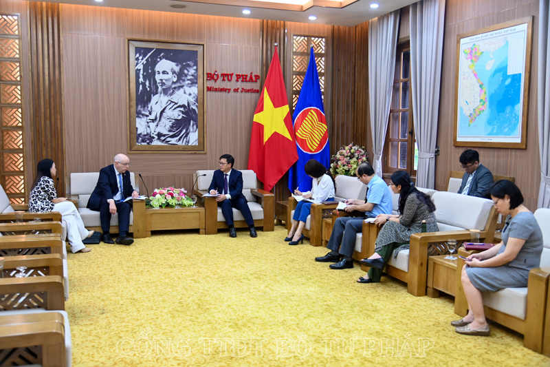 Thứ trưởng cũng chia sẻ với Đại sứ Keijo Norvanto nhu cầu của Bộ Tư pháp về hợp tác tư pháp và pháp luật để đáp ứng yêu cầu của Nghị quyết 27-NQ/TW ngày 09/11/2022 của Ban chấp hành Trung ương Đảng Khóa XIII về tiếp tục xây dựng và hoàn thiện nhà nước pháp quyền xã hội chủ nghĩa cũng như Nghị quyết số 77/NQ-CP ngày 12/5/2023 của Chính phủ về Chương trình hành động của Chính phủ thực hiện Nghị quyết số 27-NQ/TW.