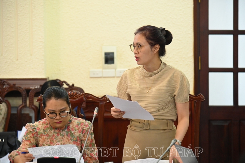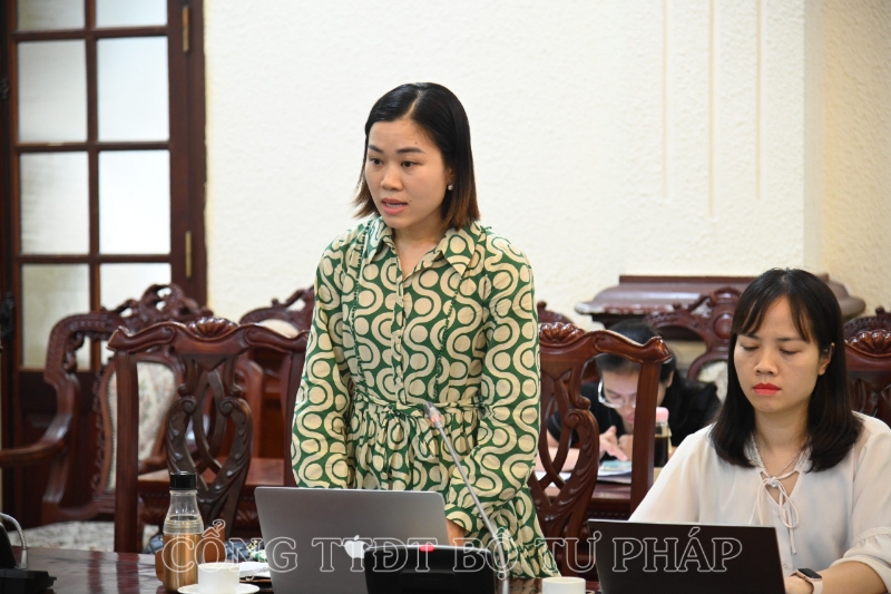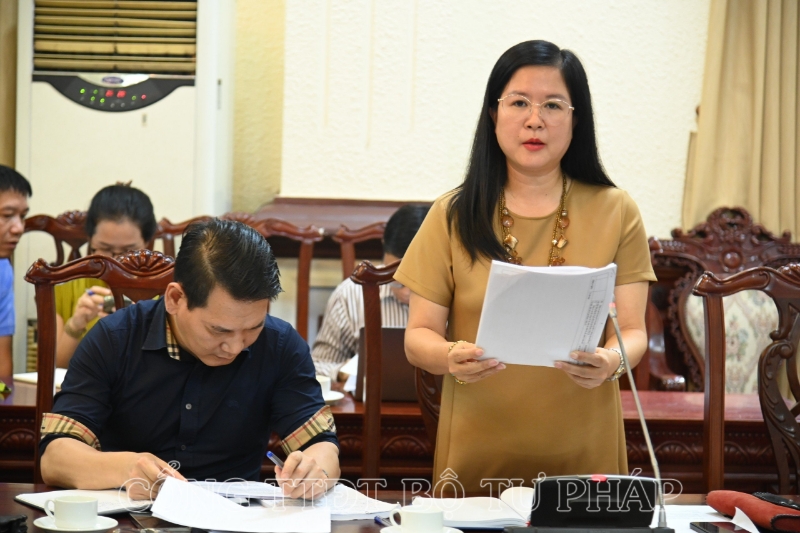 Phó Vụ trưởng Vụ Các vấn đề chung về xây dựng pháp luật - Bộ Tư pháp Đỗ Thị Thanh Hương báo cáo tại phiên họp
