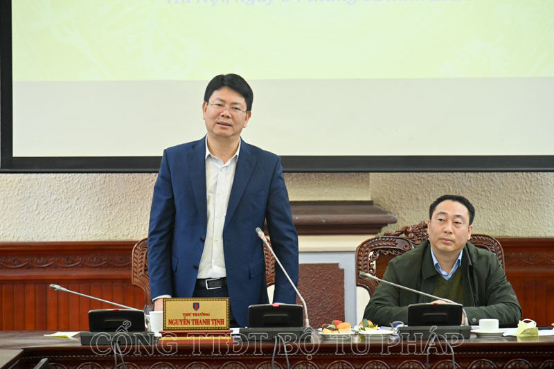 Thứ trưởng Nguyễn Thanh Tịnh và Cục trưởng Cục PBGDPL Lê Vệ Quốc đồng chủ trì Hội nghị