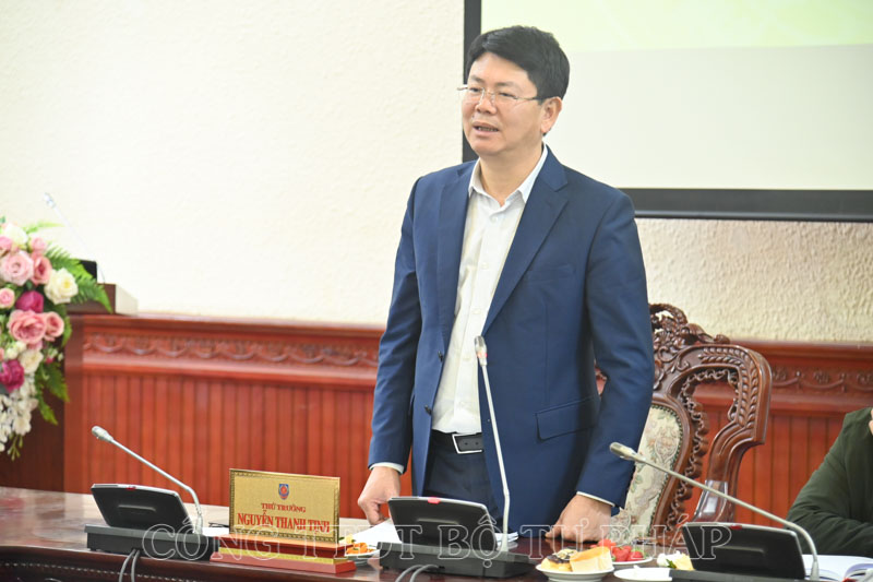 Phát biểu chỉ đạo tại Hội nghị, Thứ trưởng Nguyễn Thanh Tịnh ghi nhận, đánh giá cao những kết quả, thành tích tập thể Cục PBGDPL đã đạt được trong năm vừa qua đồng thời thẳng thắn chỉ ra một số tồn tại, hạn chế. Trong năm 2024, Thứ trưởng yêu cầu Cục triển khai các nhiệm vụ bám sát yêu cầu, chỉ đạo của Đảng, Nhà nước theo tinh thần Kết luận số 80-KL/TW ngày 20/6/2020 của Ban Bí thư về việc tiếp tục thực hiện Chỉ thị số 32-CT/TW của Ban Bí thư về tăng cường sự lãnh đạo của Đảng trong công tác phổ biến, giáo dục pháp luật, nâng cao ý thức chấp hành pháp luật của cán bộ, nhân dân; Nghị quyết số 27-NQ/TW ngày 9/11/2022 Hội nghị lần thứ 6 Ban Chấp hành Trung ương Đảng khóa XIII về tiếp tục xây dựng và hoàn thiện Nhà nước pháp quyền xã hội chủ nghĩa Việt Nam trong giai đoạn mới. Trong đó, cần bước đầu xây dựng mô hình đổi mới công tác PBGDPL theo tinh thần Kết luận số 80 và Nghị quyết số 27, chú trọng phát huy sự chủ động của người dân trong công tác PBGDPL, Nhà nước có vai trò tạo dựng và bảo đảm các điều kiện cần thiết để người dân chủ động tiếp cận và thực thi pháp luật.