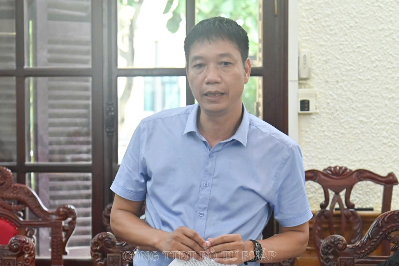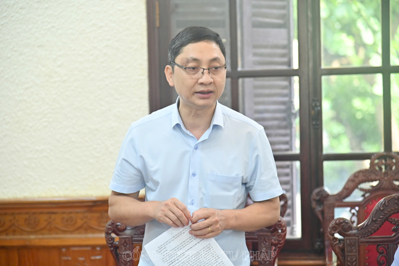 Đồng chí Trần Văn Lợi, Trưởng phòng Phòng Chính sách pháp luật, Vụ Các vấn đề chung về xây dựng pháp luật báo cáo tại cuộc họp.