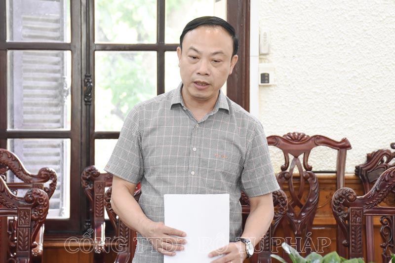 Giám đốc Học viện Tư pháp Nguyễn Xuân Thu báo cáo tại cuộc họp.