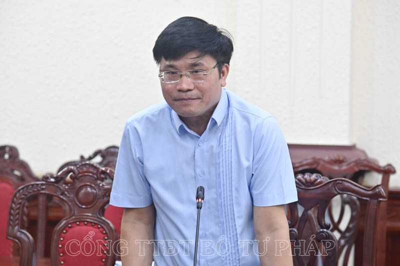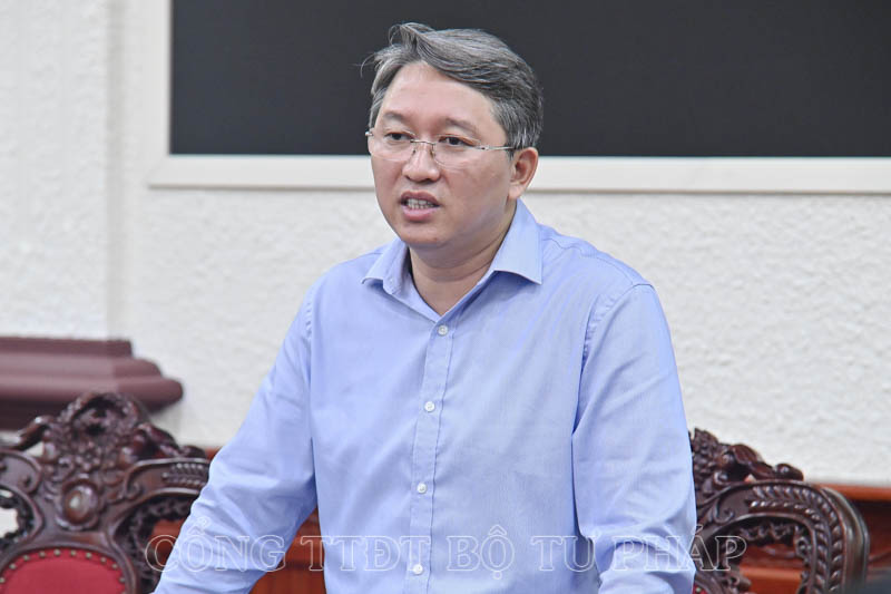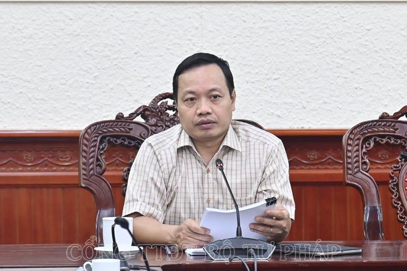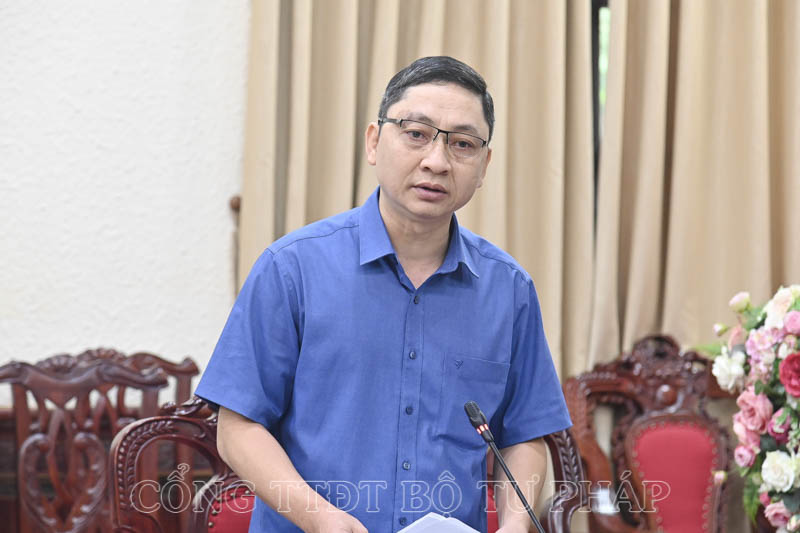 Vụ trưởng Vụ Các vấn đề chung về xây dựng pháp luật Trần Anh Đức báo cáo tại buổi làm việc.