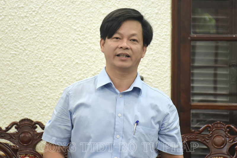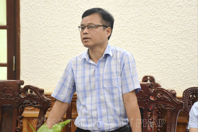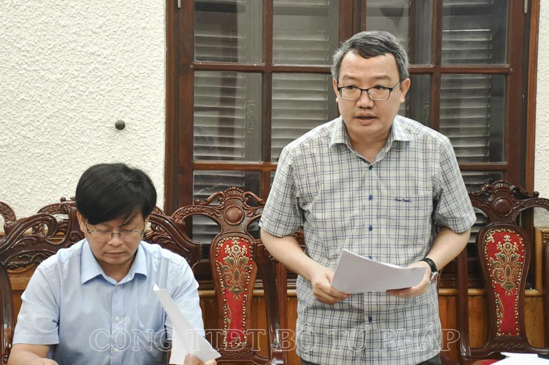 Phó Cục trưởng Cục Kiểm tra văn bản QPPL Nguyễn Duy Thắng phát biểu tại cuộc họp.