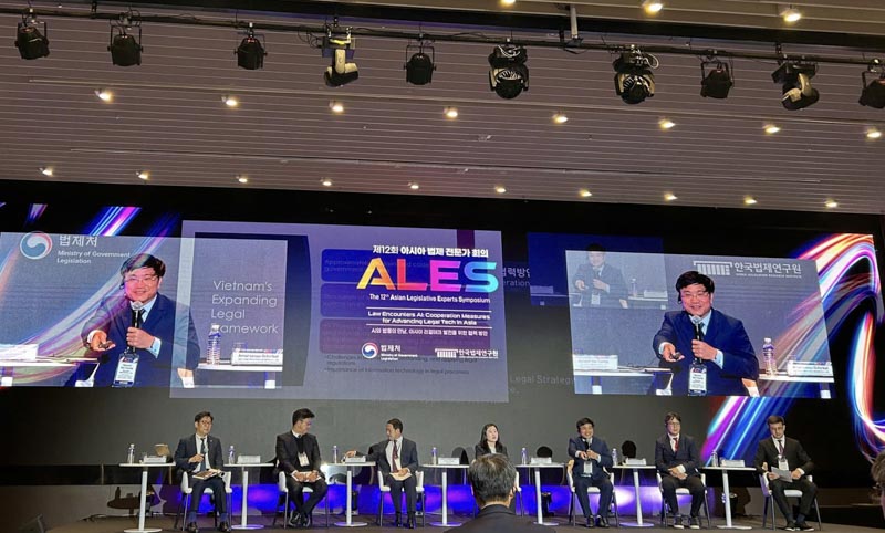 Bên cạnh phần phát biểu chào mừng của Lãnh đạo một số nước, ALES 12 có hai phiên thảo luận: Phiên 1: Thực trạng của ứng dụng công nghệ thông tin trong xây dựng pháp luật và các quy định của pháp luật điều chỉnh lĩnh vực này và Phiên 2: Dịch vụ công về ứng dụng công nghệ thông tin trong xây dựng pháp luật ở Châu Á và phương hướng hợp tác. Ông Nguyễn Văn Cương, Viện trưởng Viện Chiến lược và Khoa học pháp lý tham gia thảo luận tại Phiên 2 cùng với một số diễn giả đến từ Bộ Tư pháp, các cơ sở nghiên cứu, đào tạo của các nước như Mông Cổ, Hàn Quốc, Uzebekistan, các doanh nghiệp cung ứng dịch vụ AI,… nội dung trao đổi của các diễn giả đã cho thấy việc ứng dụng AI trong công tác xây dựng pháp luật đang là một xu thế khó thay đổi, AI đã góp phần hỗ trợ quá trình xây dựng pháp luật được nhanh hơn, tiết kiệm được nguồn lực,… tuy nhiên, vẫn còn nhiều vấn đề đặt ra trong việc sử dụng AI trong xây dựng pháp luật, thi hành pháp luật như tính chính xác của các kết quả do AI mang lại, hệ quả pháp lý của việc sử dụng AI trong lĩnh vực pháp luật khi có những sai sót,…