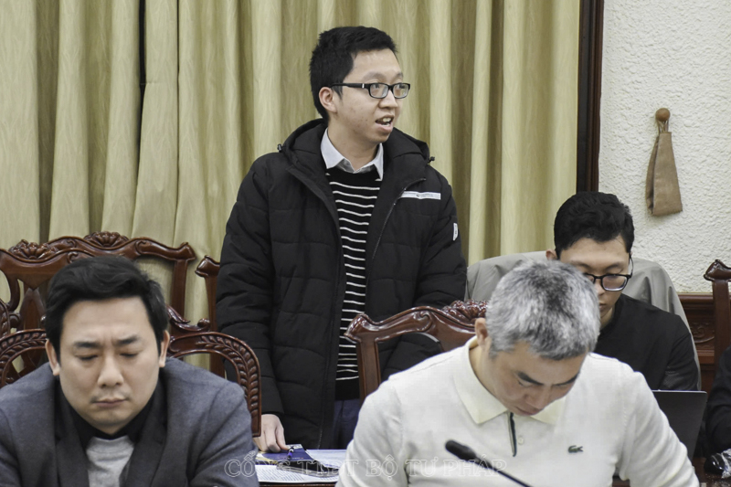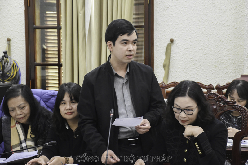 Đồng chí Trần Việt Đức, đại diện Vụ Pháp luật, Văn phòng Chính phủ phát biểu tại phiên họp.