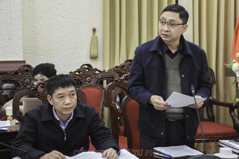 Vụ trưởng Vụ Các vấn đề chung về xây dựng pháp luật Trần Anh Đức báo cáo tại phiên họp.