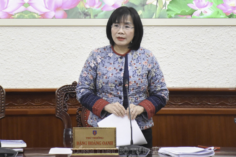 Chủ tịch Hội đồng thẩm định, Thứ trưởng Bộ Tư pháp Đặng Hoàng Oanh phát biểu kết luận phiên họp.