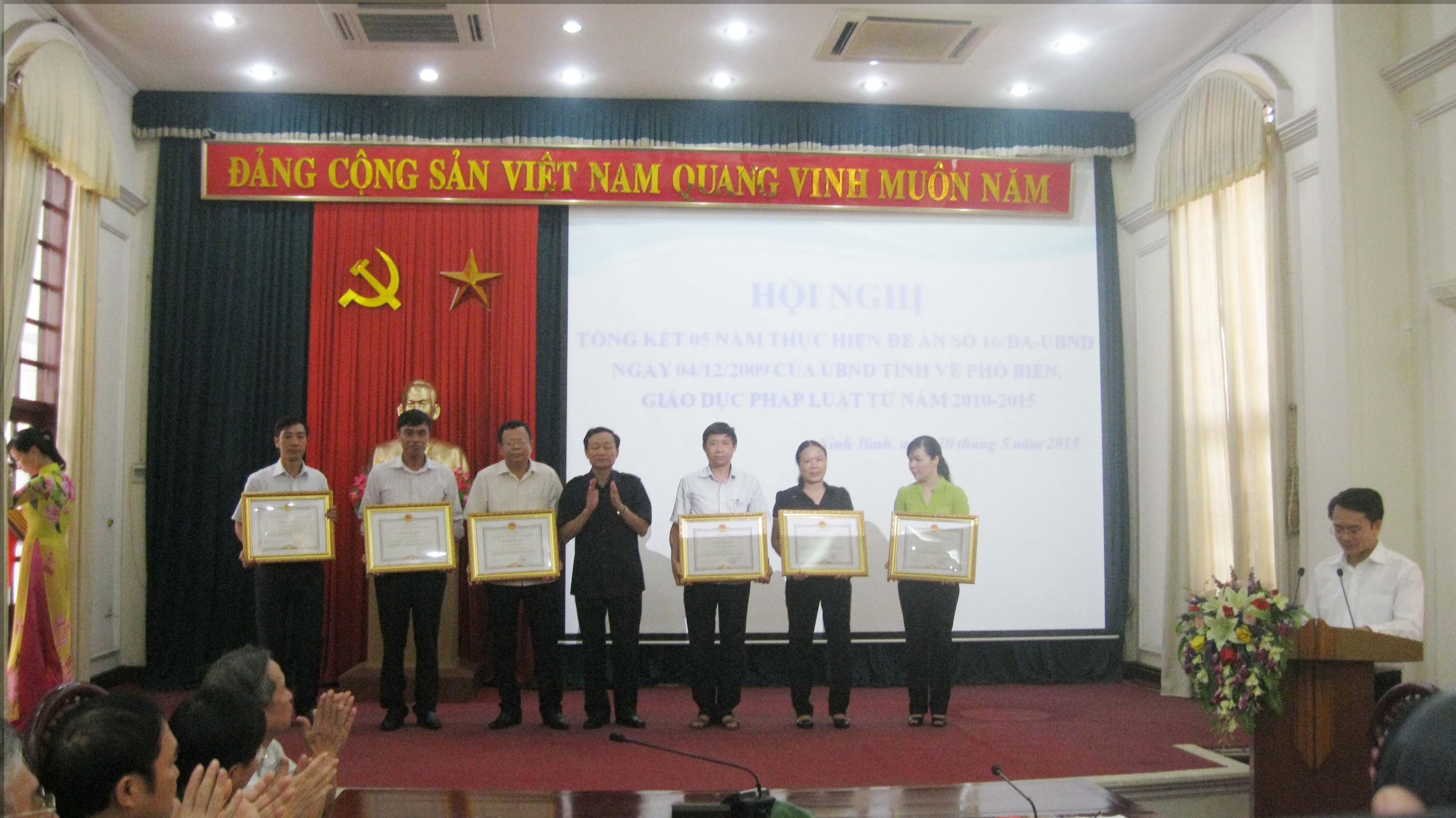 Từ kết quả đạt được của các cấp, các ngành, các cơ quan, đơn vị, UBND tỉnh Ninh Bình đã quyết định tặng Bằng khen cho 11 tập thể và 15 cá nhân có thành tích xuất sắc trong 05 năm thực hiện Đề án phổ biến, giáo dục pháp luật trên địa bàn tỉnh.