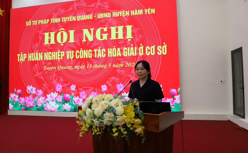 Tại Hội nghị, đồng chí Vũ Thị Minh Hiền, Trưởng Phòng Xây dựng kiểm tra thi hành pháp luật và phổ biến, giáo dục pháp luật, Sở Tư pháp tỉnh Tuyên Quang đã tập huấn về nghiệp vụ công tác hòa giải ở cơ sở (về phạm vi hòa giải ở cơ sở; nguyên tắc hòa giải ở cơ sở; quyền, nghĩa vụ của Tổ trưởng Tổ hòa giải, Hòa giải viên; các bước tiến hành hòa giải; công nhận hòa giải thành ngoài Tòa án; kinh phí đảm bảo thực hiện công tác hòa giải ở cơ sở…); kỹ năng hòa giải; phổ biến một số quy định của pháp luật về dân sự, hôn nhân và gia đình có liên quan đến công tác hòa giải ở cơ sở.