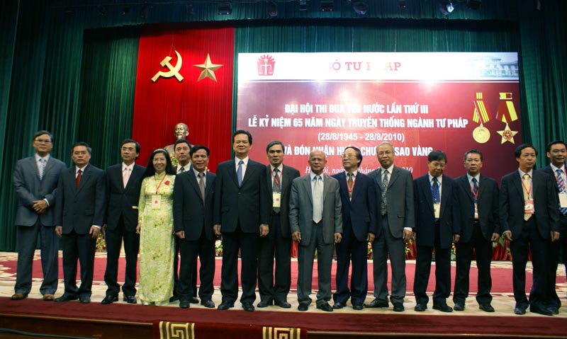 Thay mặt Đảng, Nhà nước, Thủ tướng Nguyễn Tấn Dũng đã trao Huân chương Sao Vàng cho ngành Tư pháp. Đây là phần thưởng cao quý của Đảng, Nhà nước ghi nhận công lao của tập thể nhiều thế hệ cán bộ, công chức, viên chức ngành Tư pháp cống hiến cho sự nghiệp của Đảng, Nhà nước và toàn dân.