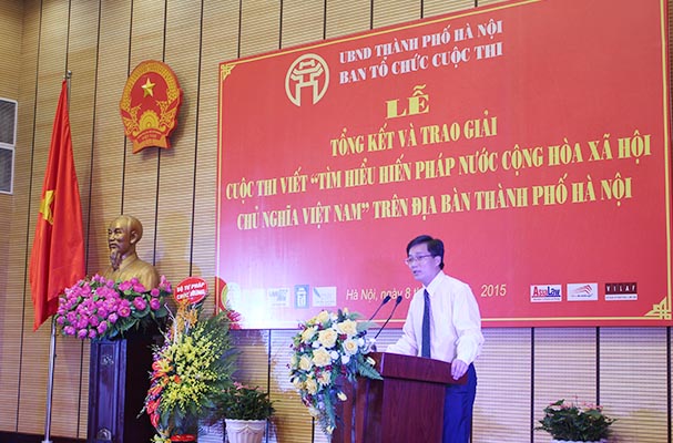 Cuối tuần qua, UBND TP Hà Nội đã tổ chức Lễ tổng kết và trao giải cuộc thi viết “Tìm hiểu Hiến pháp nước Cộng hòa xã hội chủ nghĩa Việt Nam”. Thứ trưởng Bộ Tư pháp Nguyễn Khánh Ngọc, Phó Chủ tịch UBND TP Hà Nội – Trưởng ban tổ chức cuộc thi Lê Hồng Sơn và nhiều lãnh đạo các ban ngành của TP đã tham dự lễ tổng kết.