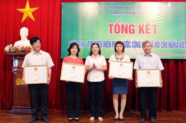 Qua gần 01 năm phát động, tổ chức triển khai thực hiện cuộc thi viết “Tìm hiểu Hiến pháp nước CHXHCN Việt Nam” trên địa bàn tỉnh Quảng Ngãi, sáng ngày 13/8/2015, Ban tổ chức cuộc thi “Tìm hiểu Hiến pháp nước CHXHCN Việt Nam” trên địa bàn tỉnh Quảng Ngãi đã tổ chức hội nghị tổng kết cuộc thi và công bố các quyết định khen thưởng, trao giải cho các tập thể, cá nhân.