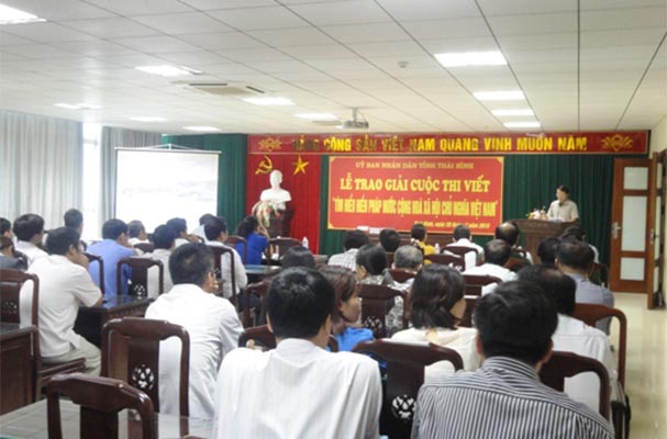 “Triển khai thi hành Hiến pháp dưới nhiều hình thức đã trở thành nhiệm vụ của cả hệ thống chính trị; trong đó, tổ chức cuộc thi viết “Tìm hiểu Hiến pháp nước Cộng hòa xã hội chủ nghĩa Việt Nam” là đợt sinh hoạt chính trị - pháp lý rộng khắp, là một hình thức tuyên truyền, phổ biến Hiến pháp tạo hiệu ứng lan tỏa rộng rãi đến các tầng lớp nhân dân, cán bộ, công chức, viên chức, công nhân, chiến sỹ, lực lượng vũ trang và người Việt Nam ở nước ngoài…” là một trong những đánh  giá về kết quả cuộc thi viết “Tìm hiểu Hiến pháp nước Cộng hòa xã hội chủ nghĩa Việt Nam” trên địa bàn tỉnh Thái Bình.