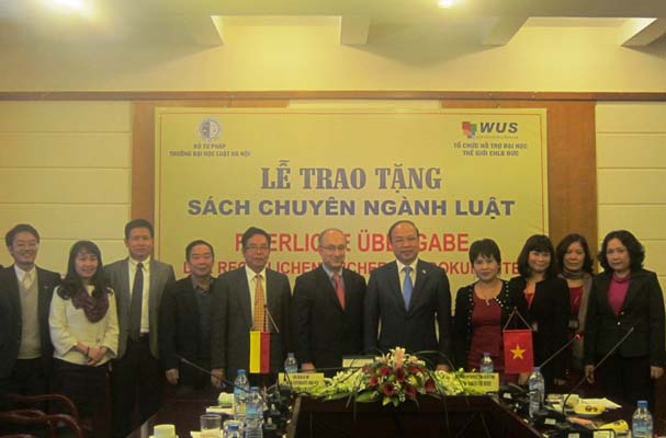 Tổ chức hỗ trợ Đại học thế giới Đức và Văn phòng Hessen là một trong những đối tác có mối quan hệ hợp tác lâu dài, hiệu quả với Bộ Tư pháp nói chung và Trường Đại học Luật Hà Nội nói riêng. Trong thời gian vừa qua, Tổ chức hỗ trợ Đại học thế giới Đức và Văn phòng Hessen đã có nhiều hoạt động hợp tác, hỗ trợ thiết thực cho Trường Đại học Luật Hà Nội như tài trợ học bổng cho sinh viên có hoàn cảnh khó khăn, tổ chức thành công nhiều hội thảo khoa học tại Trường, là đầu mối kết nối hợp tác giữa Trường với các đối tác của CHLB Đức... Tại buổi Lễ, TS. Kambiz Ghawami đã đại diện cho Tổ chức hỗ trợ Đại học thế giới Đức và Văn phòng Hessen tặng Trường Đại học Luật Hà Nội (Trung tâm pháp luật Đức) gần 300 đầu sách chủ yếu bằng tiếng Đức và 1 số bằng tiếng Anh, bao gồm các sách chuyên ngành luật như luật kinh tế, luật thương mại, luật kinh tế quốc tế, luật hợp đồng, luật môi trường, pháp luật về kinh tế chính trị, pháp luật triết học, luật châu Âu và 1 số sách tham khảo về nhà nước và xã hội dân sự, về quyền con người…