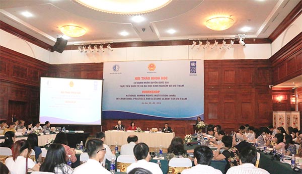 Với sự hỗ trợ của Chương trình phát triển Liên hợp quốc (UNDP), ngày 25/9/2015, Bộ Ngoại giao và Trường Đại học Luật Hà Nội đã phối hợp tổ chức Hội thảo: Cơ quan nhân quyền quốc gia – Thực tiễn quốc tế và bài học kinh nghiệm cho Việt Nam. Tham dự Hội thảo có đại diện lãnh đạo Bộ Ngoại giao, Trường Đại học Luật Hà Nội, UNDP tại Việt Nam cùng đông đảo các đại biểu đến từ Ban đối ngoại Trung ương, Uỷ ban MTTQ Việt Nam, Uỷ ban dân tộc, Hội bảo vệ quyền trẻ em, Trường Đại học Kiểm sát, Học viện Tư pháp, Học viện Hành chính quốc gia…
