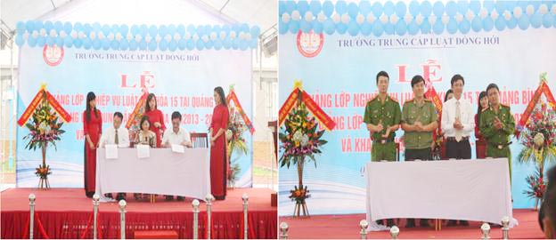 Nhằm nâng cao chất lượng đào tạo, giúp giáo viên và học sinh đi thực tế và thực tập tại các cơ quan quản lý nhà nước liên quan đến chuyên ngành, nghiệp vụ đào tạo, bồi dưỡng và xây dựng trường học an toàn, đảm bảo an ninh, trật tự..., tại buổi Lễ, Nhà trường đã tổ chức ký kết chương trình phối hợp đưa giáo viên đi thực tế, đưa học sinh đi thực tập giữa Cục Thi hành án Dân sự tỉnh Quảng Bình, Sở Tư pháp tỉnh Quảng Bình và Trường Trung cấp Luật Đồng Hới; ký kết chương trình phối hợp đảm bảo công tác an ninh, trật tự giữa Phòng PA83, Phòng PC64 – Công an tỉnh Quảng Bình và Trường Trung cấp Luật Đồng Hới.