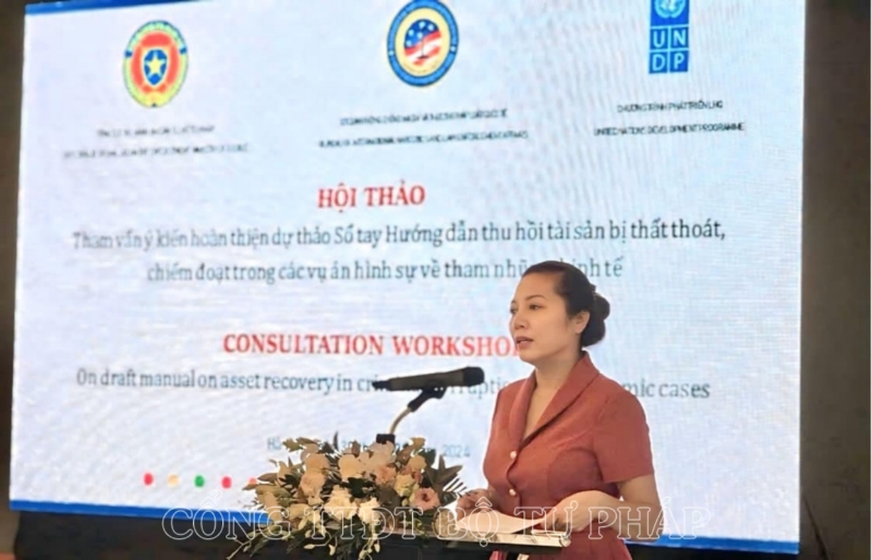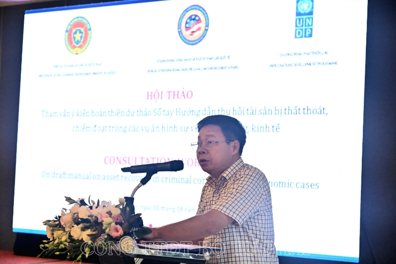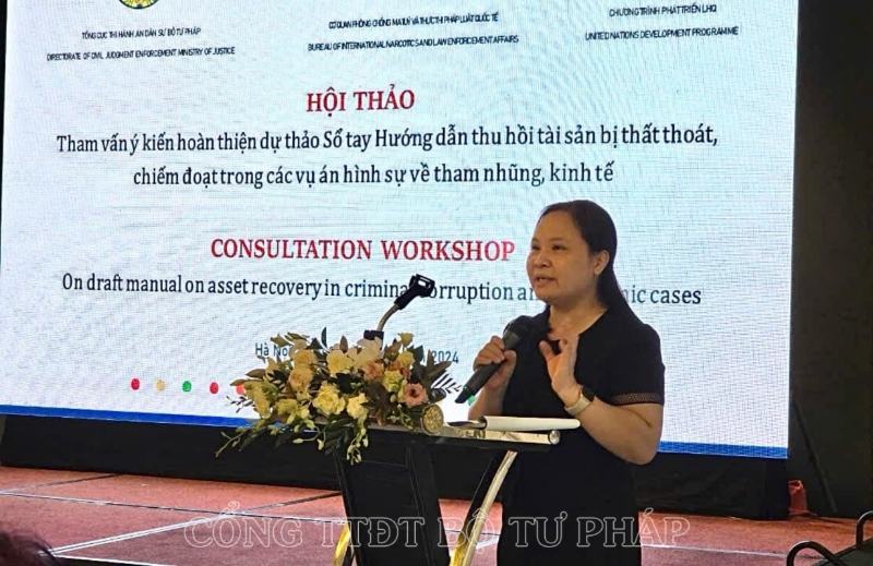 Sáng 30/8, tại Hà Nội, Tổng Cục Thi hành án dân sự (Bộ Tư pháp), Chương trình Phát triển Liên Hợp Quốc và Cơ quan phòng chống ma túy và thực thi pháp luật quốc tế tổ chức Hội thảo Tham vấn ý kiến hoàn thiện dự thảo Sổ tay hướng dẫn thu hồi tài sản bị thất thoát, chiếm đoạt trong các vụ án về tham nhũng, kinh tế.