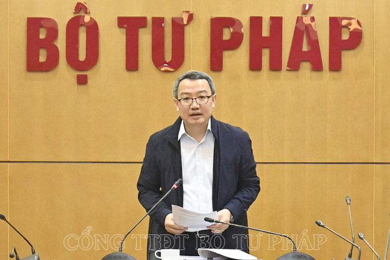 Đại diện Cục Kiểm tra văn bản QPPL báo cáo về tình hình thực hiện nhiệm vụ của Thường trực Ban Chỉ đạo.