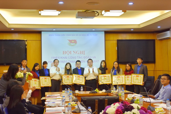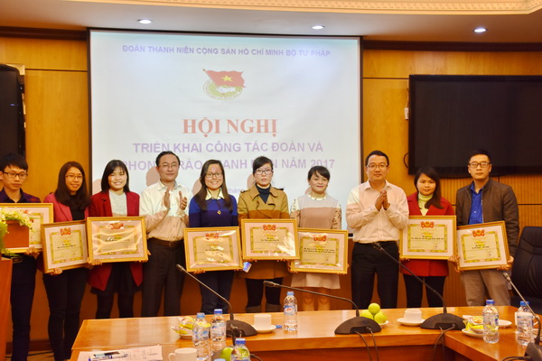 Cũng tại Hội nghị đã công bố Bằng khen của Trung ương Đoàn thanh niên Cộng sản Hồ Chí Minh cho tập thể Đoàn thanh niên Bộ Tư pháp và 01 cá nhân; Bằng khen của Ban Chấp hành Đoàn Khối các cơ quan Trung ương cho 03 tập thể và 01 cá nhân; Giấy khen của Ban Thường vụ Đoàn Thanh niên Bộ Tư pháp cho 12 tập thể và 33 cá nhân đã có thành tích xuất sắc trong công tác đoàn và phong trào thanh niên năm 2016; Giấy khen của Ban Thường vụ Đoàn Thanh niên Bộ Tư pháp cho 10 tập thể đạt danh hiệu tiên tiến trong công tác Đoàn và phong trào thanh niên. Nhân dịp này, Ban Chấp hành Đoàn Thanh niên Bộ đã trao tặng Cờ thưởng cho Đoàn cơ sở Tổng cục Thi hành án dân sự vì đã có thành tích xuất sắc dẫn đầu công tác đoàn và phong trào thanh niên năm 2016.