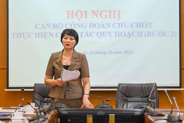 Chủ tịch Công đoàn Bộ Khương Thị Thanh Huyền phát biểu tại Hội nghị (Ảnh: Lê Huy)
