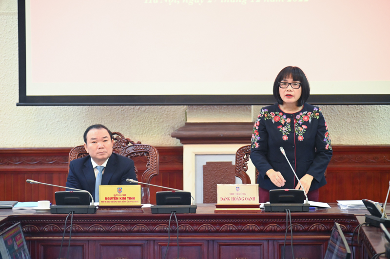 Tiếp thu các ý kiến của Bộ trưởng, Thứ trưởng Đặng Hoàng Oanh nêu rõ trong năm 2023, Đảng bộ Bộ Tư pháp tiếp tục rà soát các chỉ tiêu, nhiệm vụ, bám sát chỉ đạo của Đảng ủy Bộ, Ban Cán sự Đảng để kịp thời ban kế hoạch thực hiện các nhiệm vụ. Bên cạnh đó cần nâng cao hiệu quả phối hợp giữa Thủ trưởng đơn vị với cấp ủy trong lãnh đạo thực hiện các nhiệm vụ chuyên môn, nhiệm vụ chính trị, kiện toàn bộ máy; nâng cao năng lực lãnh đạo, sức chiến đấu của các cấp ủy Đảng, nâng cao chất lượng học tập quán triệt các văn bản của Đảng cấp trên, bám sát nhiệm vụ chính trị của bộ ngành. Đổi mới phương thức, lề lối làm việc, tăng cường kỷ cương, kỷ luật, chú trọng công tác quản lý, phát triển Đảng viên…