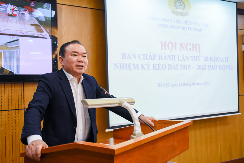 Chiều 12/01, Bộ Tư pháp tổ chức Hội nghị Ban chấp hành lần thứ 20 khóa II (mở rộng) Tổng kết công tác Công đoàn năm 2022 và triển khai công tác năm 2023 của Công đoàn Bộ. Chủ trì Hội nghị có đồng chí Khương Thị Thanh Huyền, Chủ tịch Công đoàn Bộ Tư pháp.