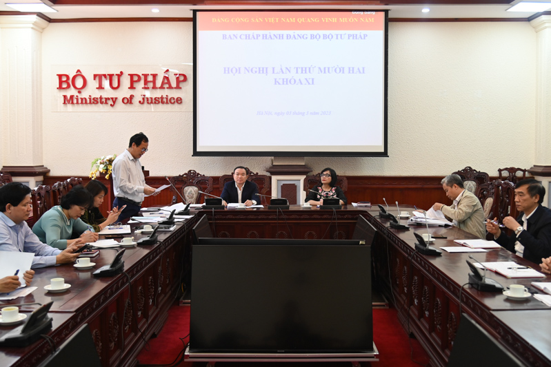Chiều ngày 03/03, Ban Chấp hành Đảng bộ Bộ Tư pháp tổ chức Hội nghị lần thứ 12 khóa XI. Đồng chủ trì Hội nghị có Phó Bí thư Đảng ủy Bộ, Thứ trưởng Bộ Tư pháp Đặng Hoàng Oanh và Phó Bí thư Thường trực Đảng ủy Bộ Tư pháp Nguyễn Kim Tinh.