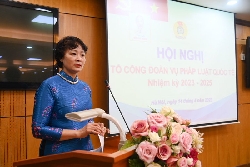 Phát biểu tại Hội nghị, Chủ tịch Công đoàn Bộ Tư pháp Khương Thị Thanh Huyền ghi nhận, đánh giá cao sự trách nhiệm, cố gắng và kết quả đạt được của Tổ Công đoàn Vụ Pháp luật quốc tế trong nhiệm kỳ 2020 – 2023.
