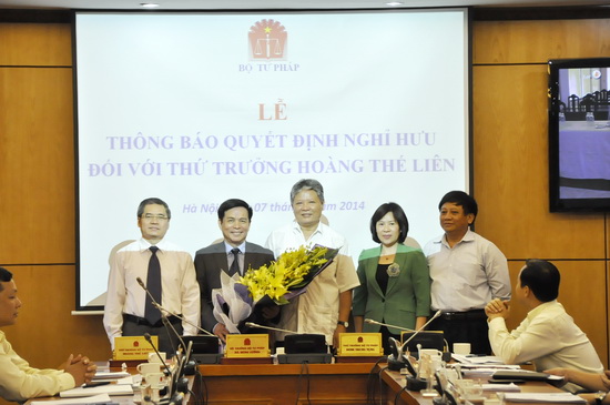 Bộ Tư pháp trao quyết định nghỉ hưu cho Thứ trưởng Hoàng Thế LiênSáng ngày 07/5, tại Hội nghị cán bộ chủ chốt các đơn vị thuộc Bộ, Bộ trưởng Bộ Tư pháp Hà Hùng Cường đã trao quyết định nghỉ hưu cho Thứ trưởng Hoàng Thế Liên.