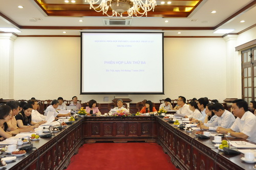 Bên cạnh việc ghi nhận những kết quả đã đạt được trong 6 tháng đầu năm, nhiều hạn chế trong công tác PBGDPL cũng được các thành viên Hội đồng tập trung phân tích và bàn giải pháp khắc phục. Đó là tính chủ động, tích cực của Hội đồng phối hợp PBGDPL các cấp chưa cao. Thêm vào đó, kinh phí dành cho công tác PBGDPL tại các Bộ, ngành địa phương vừa ít, vừa không đồng đều. Đại diện Vụ Pháp chế, Bộ Giáo dục Đào tạo phản ánh: năm 2014, Bộ đề xuất dành 10 tỷ đồng cho công tác PBGDPL nhưng chỉ được Bộ Tài chính phê duyệt cho 700 triệu đồng. Với rất nhiều công việc cần triển khai trong năm 2014 thì nhiều hoạt động PBGDPL của Bộ Giáo dục và Đào tạo không biết sẽ lấy kinh phí ở đâu ra. Bộ trưởng Hà Hùng Cường, Chủ tịch Hội đồng cũng chia sẻ một thực tế: “Năm 2014 tỉnh Vĩnh Phúc dành hơn 8 tỷ đồng cho công tác PBGDPL trong khi tỉnh Điện Biên thì không cho một đồng nào, trừ hơn 100 triệu đồng kinh phí cho hoạt động hành chính của Hội đồng phối hợp PBGDPL các cấp”.