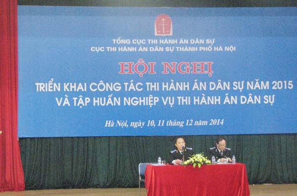 Báo cáo công tác năm 2014, Phó Cục trưởng Cục THADS Dương Minh Công cho biết, trong số việc có điều kiện, Hà Nội đã giải quyết xong 25,140 việc, đạt tỷ lệ 91,38%, tăng gần 1,700 việc so với năm 2013; đã giải quyết xong gần 4,667 tỷ đồng/số có điều kiện thi hành, đạt tỷ lệ 90%. Riêng về thi hành án đối với các khoản thu cho ngân sách nhà nước đã giải quyết được 21,480 việc thu số tiền trên 121 tỷ đồng.Năm 2014 Cục THADS Hà Nội đã lập đoàn kiểm tra 26/30 chi cục, 9 cuộc kiểm tra toàn diện đối với đơn vị cấp huyện, 2 cuộc kiểm tra đối với Chấp hành viên thuộc Cục THADS TP. Cũng trong năm, Hà Nội đã giải quyết 357 đơn khiếu nại tố cáo về THA, trong đó có một số vụ khiếu nại tố cáo kéo dài. Các mặt công tác khác như tổ chức cán bộ, đào tạo bồi dưỡng, công tác phối hợp giữa các cơ quan trong công tác THADS… cũng có nhiều chuyển biến tích cực.