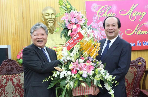 Nhân dịp đầu xuân mới Ất Mùi, ngày 28/2, Bộ trưởng Bộ Tư pháp Hà Hùng Cường cùng Đoàn công tác của Bộ Tư pháp đã tới thăm và chúc mừng năm mới lãnh đạo Tỉnh ủy, HĐND, UBND tỉnh Hà Nam. Ông Mai Tiến Dũng, Bí thư Tỉnh ủy, Chủ tịch HĐND tỉnh; ông Nguyễn Xuân Đông, Chủ tịch UBND tỉnh cùng các đồng chí thường trực Tỉnh ủy, HĐND, UBND tỉnh Hà Nam đã trân trọng đón tiếp và cảm ơn sự quan tâm của lãnh đạo Bộ Tư pháp đối với tỉnh Hà Nam.