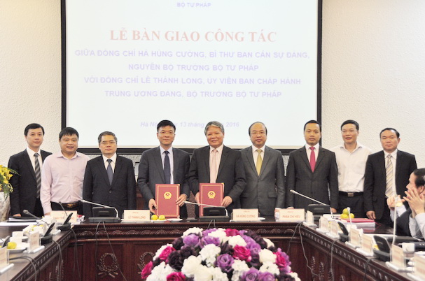 Sáng 13/4, Bộ Tư pháp đã long trọng tổ chức lễ bàn giao công tác giữa đồng chí Hà Hùng Cường - nguyên Bộ trưởng Bộ Tư pháp và đồng chí Lê Thành Long - Ủy viên Ban Chấp hành Trung ương Đảng, Bộ trưởng Bộ Tư pháp.