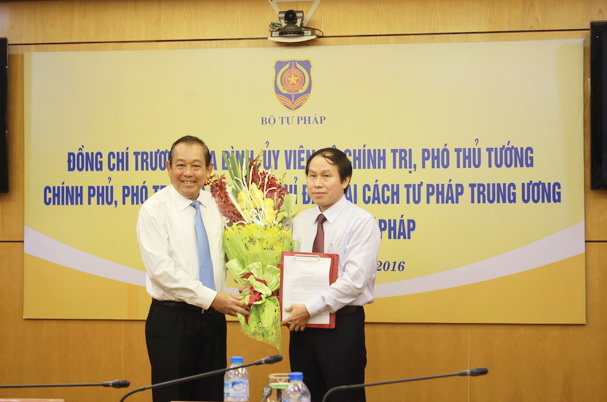Sáng 16/6, đồng chí Trương Hòa Bình, Ủy viên Bộ Chính trị, Phó Thủ tướng Chính phủ, Phó Trưởng ban Ban Chỉ đạo Cải cách tư pháp Trung ương đã đến thăm và làm việc với Bộ Tư pháp. Một trong những định hướng mà Phó Thủ tướng đề nghị Bộ, ngành Tư pháp phải lưu ý chính là tiếp tục đổi mới tư duy, tạo bước đột phá trong tham mưu, giúp Chính phủ quản lý nhà nước về công tác xây dựng, thi hành pháp luật.
