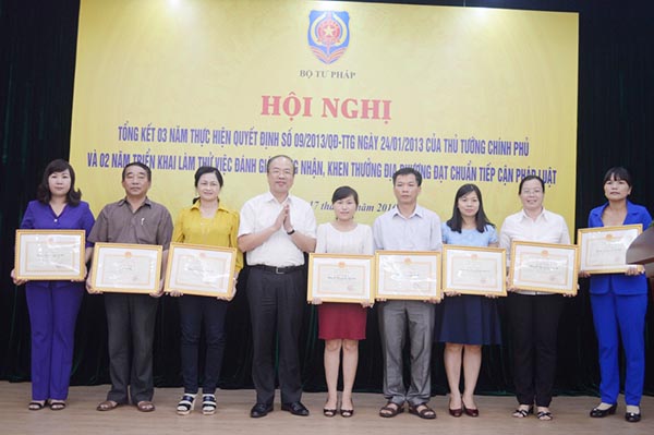 Tại Hội nghị, Thứ trưởng Phan Chí Hiếu đã tặng Bằng khen của Bộ trưởng Bộ Tư pháp cho 5 tập thể tiêu biểu về TCPL toàn quốc, tặng Bằng khen của Bộ trưởng Bộ Tư pháp cho 8 tập thể, 10 cá nhân có thành tích xuất sắc trong thực hiện Quyết định số 09/2013/QĐ-TTg của Thủ tướng Chính phủ ban hành quy định về chuẩn TCPL của người dân tại cơ sở.