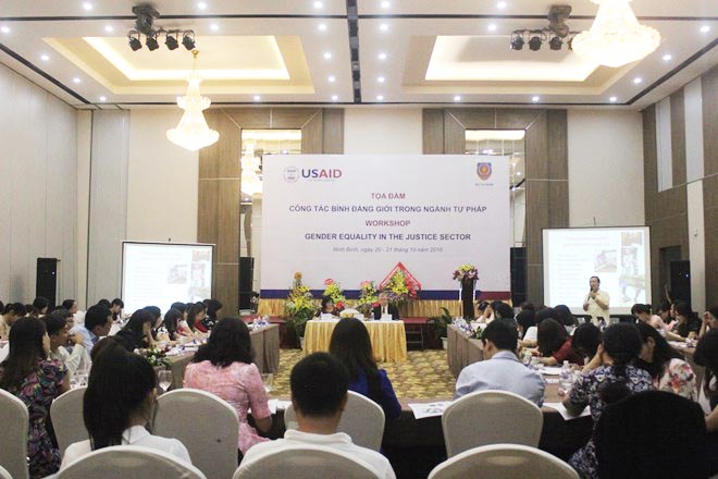 Cán bộ nữ có vai trò quan trọng trong việc xây dựng và phát triển Ngành Tư phápChiều ngày 20/10, tại Ninh Bình, Ban Vì sự tiến bộ phụ nữ (VSTBPN) ngành Tư pháp đã tổ chức Tọa đàm công tác bình đẳng giới trong ngành Tư pháp. Thứ trưởng Phan Chí Hiếu, Trưởng ban VSTBPN ngành Tư pháp chủ trì tọa đàm. Tọa đàm, nhằm xác định các nội dung, công việc để thực hiện hiệu quả hơn công tác bình đẳng giới của Bộ, ngành Tư pháp. Đây cũng là hoạt động thiết thực của Bộ Tư pháp kỷ niệm Ngày Phụ nữ Việt Nam 20/10.Tham dự Tọa đàm còn có Đại diện Cơ quan phát triển quốc tế Hoa Kỳ (USAID), đại diện các cơ quan Tư pháp của tỉnh Ninh Bình, lãnh đạo Ban Nữ công, Ban VSTBPN của 21 đơn vị thuộc Bộ Tư pháp và các cán bộ công chức của Sở Tư pháp và Cục thi hành án dân sự tỉnh Ninh Bình.