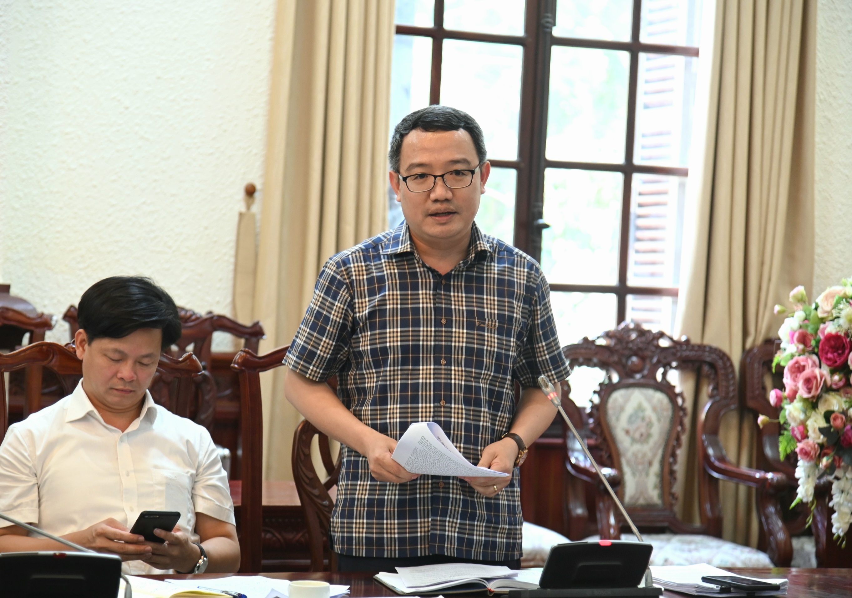 Cục trưởng Cục Kiểm tra văn bản quy phạm pháp luật Hồ Quang Huy phát biểu báo cáo tại phiên họp