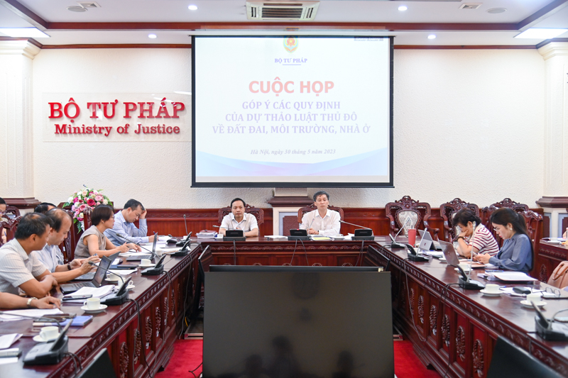 Chiều 30/5, Thứ trưởng Nguyễn Khánh Ngọc và Thứ trưởng Trần Tiến Dũng đồng chủ trì cuộc họp với các Bộ, ngành, đơn vị về góp ý các quy định của dự thảo Luật Thủ đô (sửa đổi) liên quan tới vấn đề đất đai, môi trường, nhà ở.