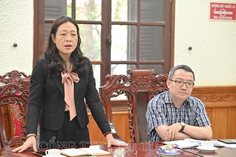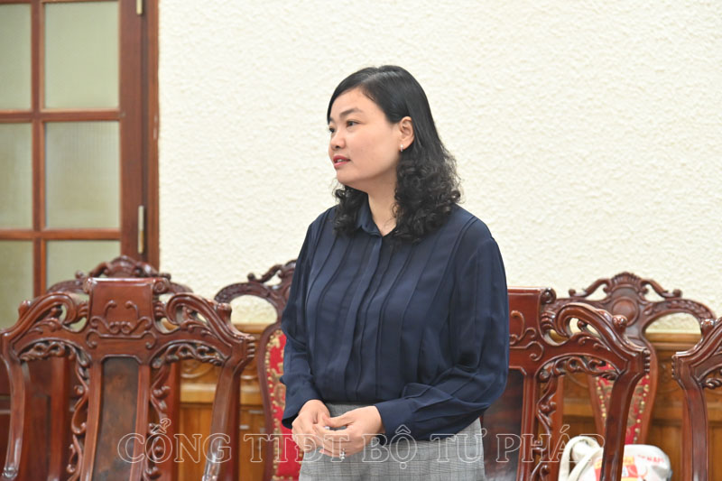 Phó Cục trưởng Cục Kiểm tra văn bản quy phạm pháp luật Nguyễn Thị Thu Hòe phát biểu tại buổi làm việc.