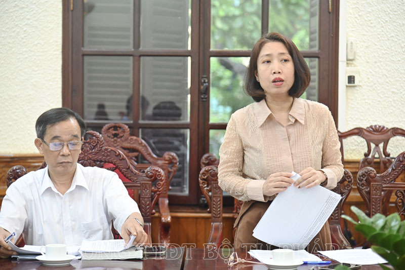 Phó Giám đốc Trung tâm Lý lịch tư pháp quốc gia Đỗ Thị Thúy Lan báo cáo tại cuộc họp.
