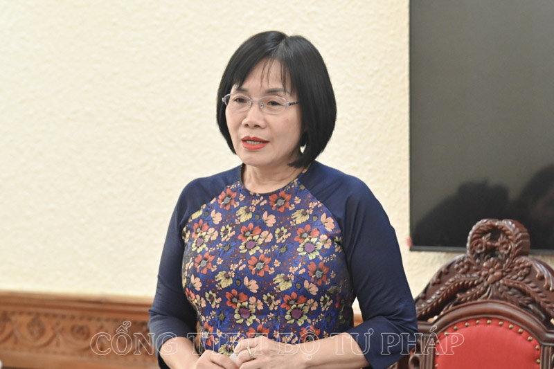 Thứ trưởng Bộ Tư pháp Đặng Hoàng Oanh phát biểu tại cuộc họp.