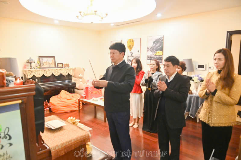 Thứ trưởng Bộ Tư pháp Nguyễn Khánh Ngọc cùng đại diện các đơn vị thuộc Bộ thăm hỏi và chúc tết gia đình cố Thứ trưởng Nguyễn Văn Sản.